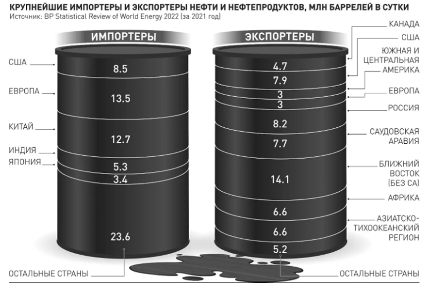 С этим согласен Потавин, запрет на экспорт российских нефтепродуктов будет весьма болезненным для наших нефтяных компаний. Дело в том, что страны ЕС и США - крупнейшие импортеры нефтепродуктов в мире. КНР и Индия покупают сырую нефть и сами являются крупными центрами переработки нефти.