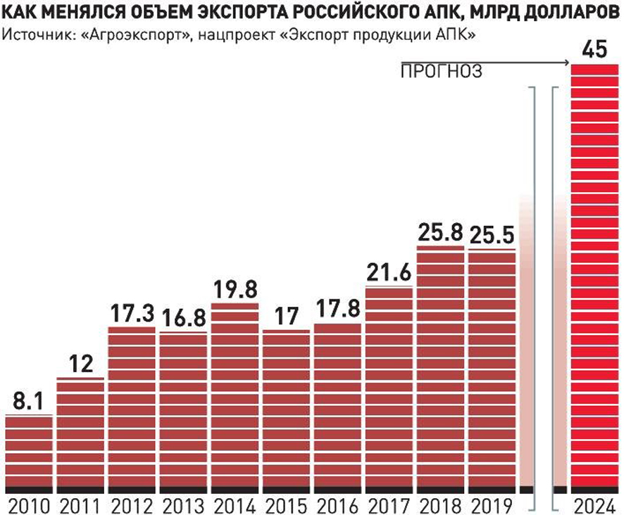 Но за последние десять лет доля России в мировом продовольственном экспорте выросла более чем в два раза. Этому способствовало снятие фитосанитарных ограничений в странах-покупателях: в 2019 году российская пшеница поставлялась в 96 стран мира в сравнении с 53 странами десять лет назад, ячмень и кукуруза — в 33 страны (23 и 13 стран в 2010 году соответственно).