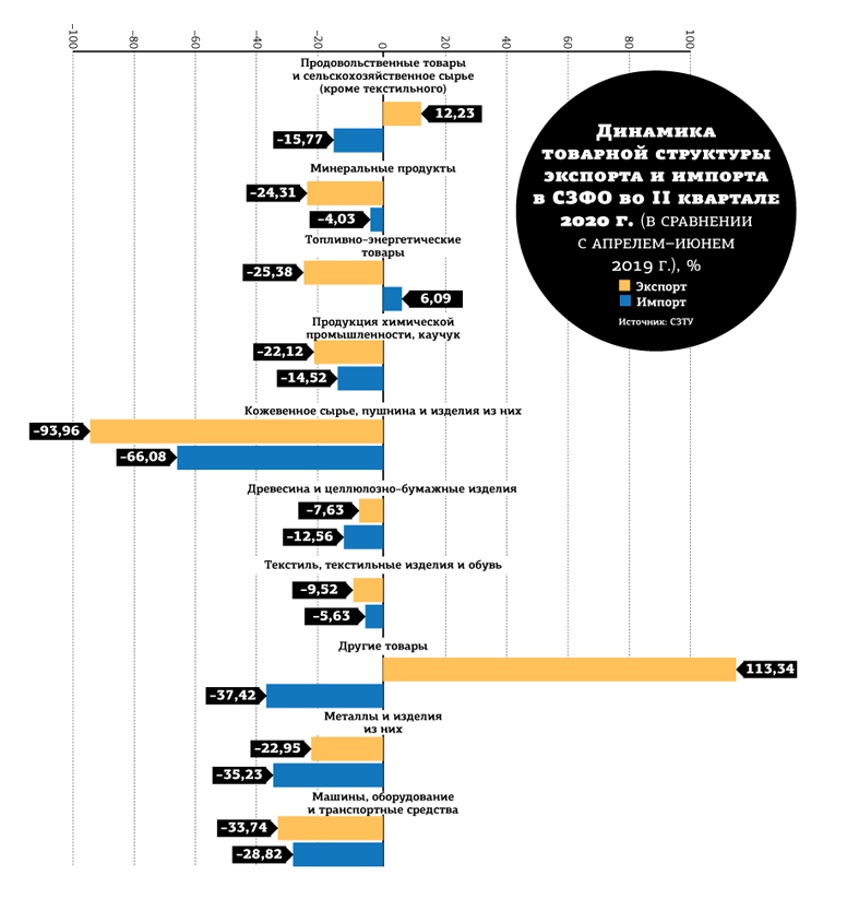 Внешнеэкономическая деятельность в СЗФО в период пандемии забуксовала, но некоторые позиции экспорта показали рост.