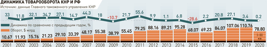 За 20 лет с момента подписания Договора уровень торгово-экономического сотрудничества между КНР и РФ постоянно повышался. Исключение составили только 2009 и 2015 годы.