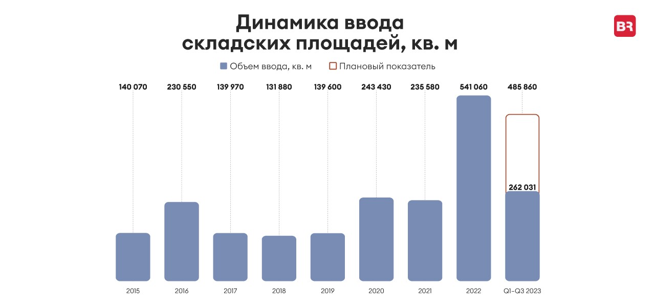Высокий интерес к индустриально-складскому рынку продолжает демонстрировать сегмент электронной коммерции. Так, только Ozon законтрактовал в 2023 году более 350 тыс. кв. м.