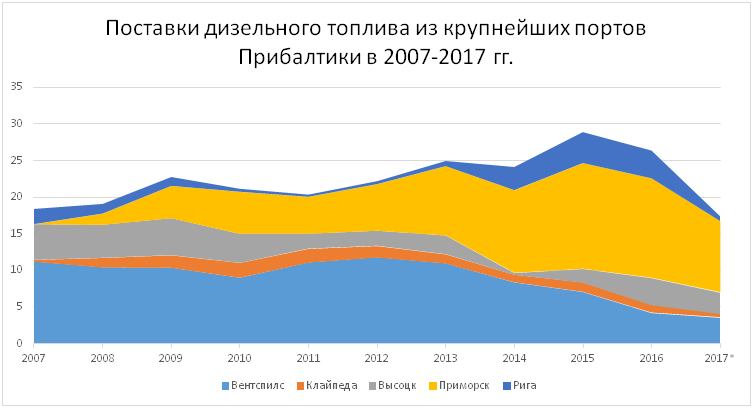 Переориентация потоков нефтепродуктов из прибалтийских портов Латвии, Литвы и Эстонии в пользу Приморска и Усть-Луги уже началась со стороны России. После того, как с началом геополитических распрей в 2014 г. об этом стали появляться слухи, в 2016 г. представители «Транснефти» подтвердили, что к 2018 г. весь товарный поток будет переориентирован на российские порты.