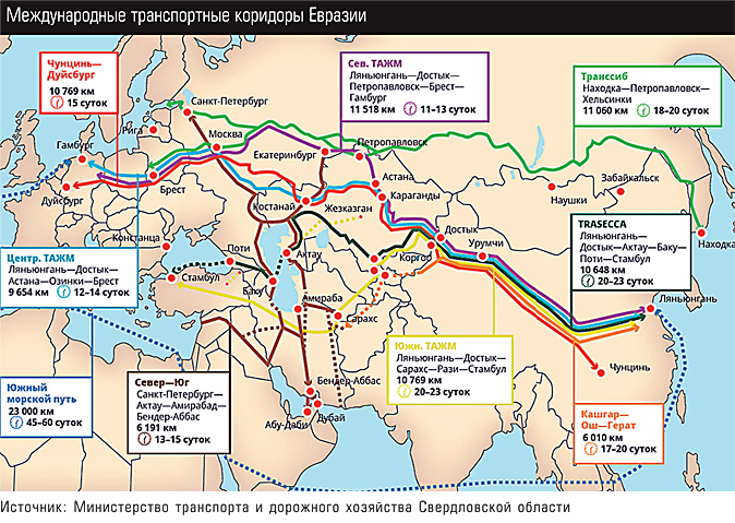 Применительно к китайскому направлению заслуживают внимания новости о развитии проектов Международного транспортного маршрута (МТМ) «Европа – Западный Китай» и Транскаспийского международного транспортного маршрута.
